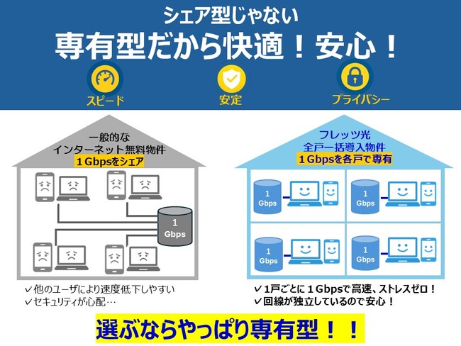 無料だけではなく、高速の時代!シェア型から専有型の時代に突入!全戸一括導入(フレッツ光)