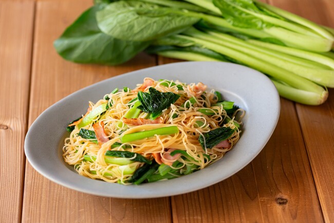 【小松菜とベーコンの焼ビーフン】
