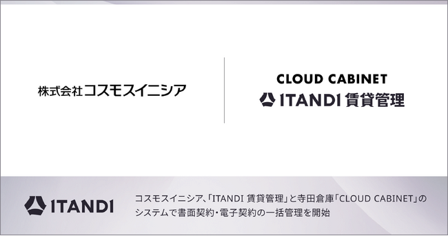 テクノロジーで不動産取引をなめらかにするイタンジ株式会社(以下「当社」)は、2026年1月、 当社が提供する賃貸管理の業務支援サービス「ITANDI 賃貸管理」の申込システム 電子契約オプションと、寺田倉庫株式会社(以下「寺田倉庫」)が提供する、文書管理システム「CLOUD CABINET(クラウドキャビネット)」の連携サービスを株式会社コスモスイニシア(以下「コスモスイニシア」)に提供開始することをお知らせします。