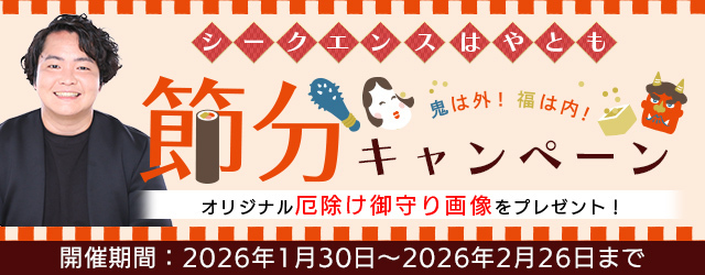 2026年の運勢|シークエンスはやともが占う総合運・仕事運・恋愛運。公式サイトにて、厄除け御守り画像がもらえる「節分キャンペーン」開催中