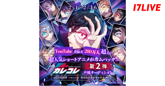 17LIVE株式会社(東京都渋谷区、代表取締役:ジャン・ホンフイ、URL:https://jp.17.live/)が運営する日本最大級のライブ配信アプリ「17LIVE(イチナナ)」は、株式会社Plottが運営・制作をする大人気YouTubeショートアニメ『混血のカレコレ』の特別回に声優として出演するライバーを決定するオーディションイベント「“登録者280万人超え”の超人気ショートアニメがカムバック!! 『混血のカレコレ』声優オーディション第2弾」を、2026年2月1日(日)より開催することが決定しましたので、お知らせいたします。