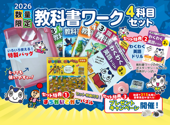 文理の「小学教科書ワーク4科目セット」が今年も登場! 2026年度のスペシャル特典は、有名イラストレーターを起用した「まちがいさがしパズル」!