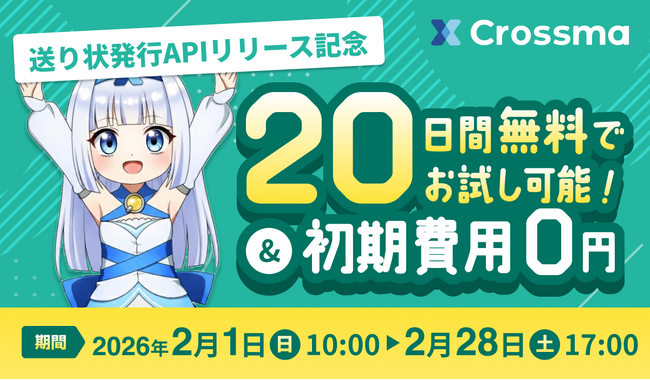 株式会社IZUMI(本社:東京都中央区京橋、代表:藤本卓治)が提供する「クロスマ」は、送り状発行業務をワンクリックで完結する「送り状発行API」のリリースを記念し、2026/2/1(日)~2/28(土)の期間限定で新規導入者向けキャンペーンを開催いたします。