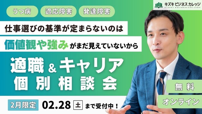 「仕事選びの基準が定まらないのは、“価値観や強み”がまだ見えていないから」キャリア×支援のプロが徹底サポート!適職&キャリア個別相談会を開催【2/28まで/完全無料】