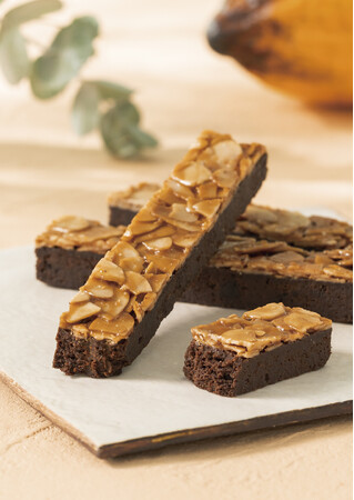 香ばしいアーモンドの香りが引き立つ、スティックタイプのフロランタンです。ベルギー産チョコレートを練り込んだ生地には、熊本県産の柑橘「不知火」を使ったペーストを合わせました。チョコレートの甘さの中に爽やかな柑橘の香りがふわりと広がります。