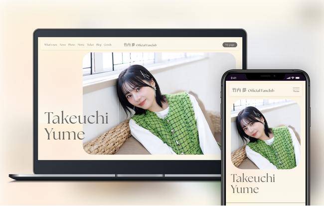 今回オープンしたのは竹内夢のオフィシャルファンクラブです。当サイトでは、会員限定の写真やムービー、チケット先行など、特別なコンテンツをお楽しみいただけます。