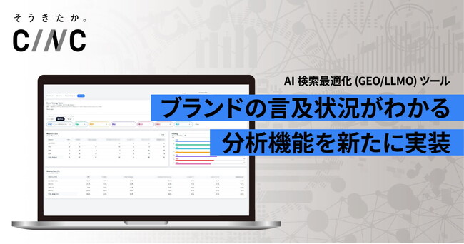 株式会社CINC(本社:東京都港区、代表取締役社長:石松友典、以下CINC)は、社内で開発・運用するAI検索最適化(GEO/LLMO)ツールにおいて、引用ドメインやブランドの言及状況を可視化し、分析できる新機能を追加いたしました。