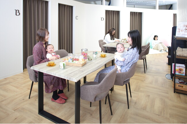 共有スペースは利用者同士が交流できる場としても機能。昼食は個室・共有スペースのいずれでも可能ですが、実際には多くのママが共有スペースを選んでいます。