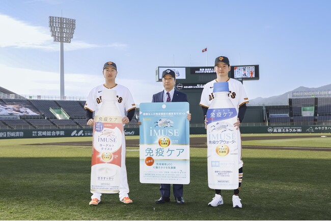 これに伴い、今シーズンの読売巨人軍の活躍を祈念し、選手の体調管理を支援するため、春季キャンプ地にて2026年2月2日(月)に「キリン iMUSE(イミューズ) ヨーグルトテイスト」「キリン iMUSE レモン」「キリン iMUSE 免疫ケアウォーター」を計3,600本贈呈しました。さらに契約期間中である2026年2月1日(日)から2027年1月31日(日)には、「キリン iMUSE ヨーグルトテイスト」などに加え、「小岩井 免疫ケアのむヨーグルト」「キリン iMUSE 免疫ケアサプリメント」を随時提供します。