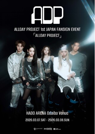 2026年3月7日(土)・8日(日)東京・アクアシティお台場内 Hado arena にて、デビュー後初となる日本国内イベント ALLDAY PROJECT 1st JAPAN FANSIGN EVENT「ALLDAY PROJECT」の開催が決定いたしました。