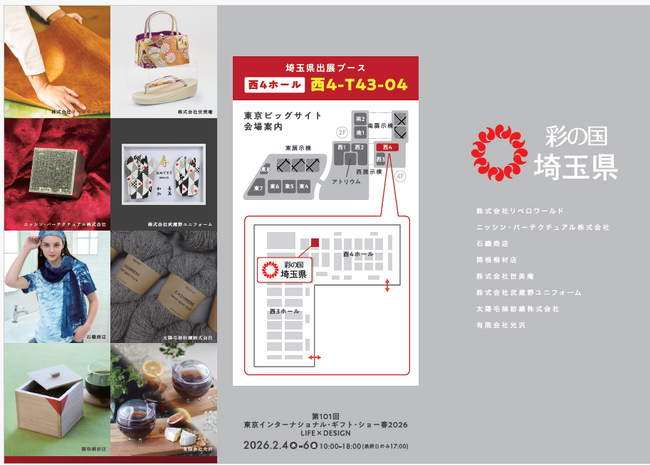 埼玉県では、伝統工芸や地場産業事業者等の販路開拓を支援するため、日本最大のパーソナルギフトと生活雑貨の国際見本市「東京インターナショナル・ギフト・ショー春2026 LIFE×DESIGN」に県内中小事業者による「埼玉県ブース」を出展します。