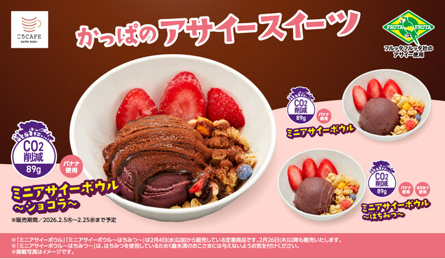 この度、株式会社フルッタフルッタ(所在地:東京都千代田区 社長:長澤誠 以下「当社」)の濃厚なアサイーを使用した「アサイースイーツ」が、コロワイドグループが運営するかっぱ寿司(カッパ・クリエイト株式会社 本社:神奈川県横浜市 代表取締役社長:山角豪 以下「カッパ・クリエイト社」)にて2026年2月5日(木)から2月25日(水)の期間限定でかっぱ寿司全店にて販売されます。