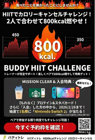 [動画: https://www.youtube.com/watch?v=dsM_h4huKo4 ]バディトレ(運営:株式会社バディトレ)は、恵比寿・本郷・戸越エリアにおいて、(ペアで運動するとSwitch2が当たるキャンペーン)を開始いたしました。