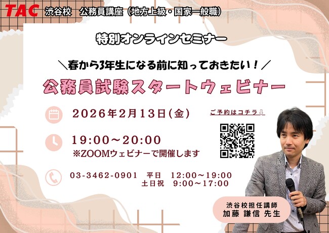 【TAC公務員】「春から3年生になる前に知っておきたい!公務員試験スタートウェビナー」を2/13(金)にオンラインで開催