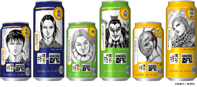 本商品は、連載20周年を迎える人気漫画『キングダム』とのコラボレーション商品です。「サッポロ 濃いめ」ブランドと、キャラクターの揺るぎない信念や壮大な人間ドラマで"濃さ"を積み重ねてきた漫画『キングダム』が、新しい"濃い体験"をお届けします。