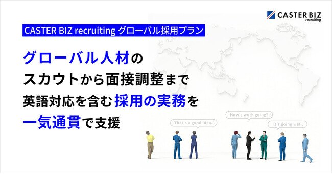 株式会社キャスター(本社:東京都千代田区、代表取締役 中川祥太、以下「キャスター」)は、2026年2月3日より、採用代行サービス「CASTER BIZ recruiting」において、英語対応が求められる環境での採用成功を、設計から運用まで一気通貫で支援する「CASTER BIZ recruiting グローバル採用プラン」の提供を開始します。