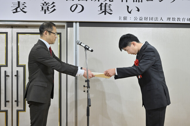 算数・数学の実用的な技能を測る、実用数学技能検定「数検」(数学検定・算数検定、以下「数検」)を実施・運営している公益財団法人日本数学検定協会(所在地:東京都台東区、理事長:高田 忍、以下「当協会」)は、公益財団法人理数教育研究所が主催している「塩野直道記念 第13回『算数・数学の自由研究』作品コンクール」(通称「MATH(マス)コン」)の優秀賞の1つである「日本数学検定協会賞」を決定し、2025年12月21日(日)に東京都内で行われた表彰式で受賞者を表彰いたしました。