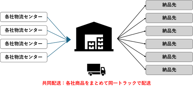2026年2月3日より、東日本の一部取引先への共同配送を開始いたします。4社がそれぞれ各取引先へ配送していたトラックを一本化することによりトラック台数を削減し、輸送の積載率向上、ドライバー不足の軽減、物流コストの抑制、二酸化炭素削減による環境負荷の低減などへの貢献を期待しています。この共同配送の取り組みについては、今後も取引先や対応エリアのさらなる拡大を検討してまいります。