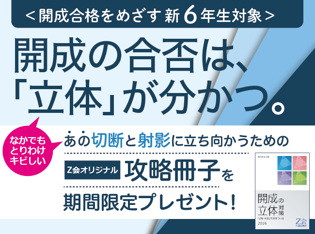 そこでZ会は、「切断」と「射影」の攻略開始に特化した冊子『<開成の立体>対策 ー切断・射影で差をつけるー2026』を、期間限定で、ご希望の新小学6年生全員にプレゼント!