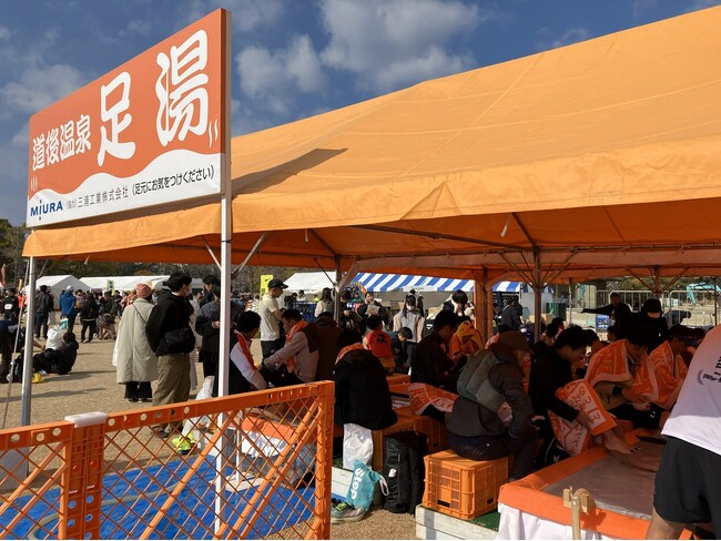 三浦工業株式会社(松山本社:愛媛県松山市、代表取締役:米田剛)は、2026年2月1日(日)に開催された「第63回 愛媛マラソン」において、ランナーの皆さまへのおもてなしとして、堀之内の城山公園内にて「足湯ブース」の熱源を提供しました。