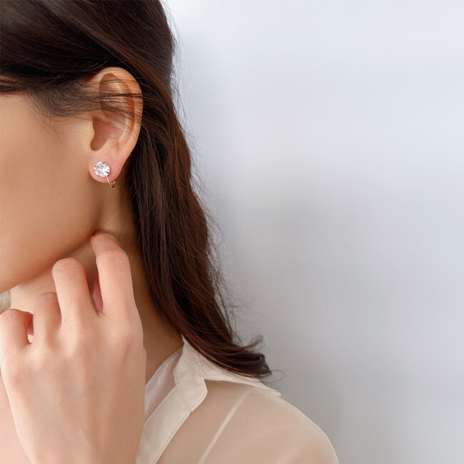 耳への圧力が軽減され、ネジバネ式イヤリングに比べて痛くなりにくいのが特長。