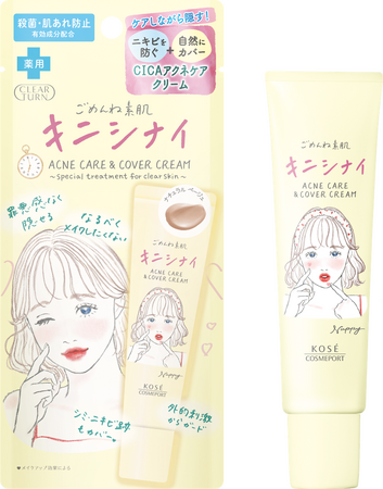 「クリアターン ごめんね素肌」は、敏感・あれがちな肌をケアするシリーズとして多くの方にご愛用頂き、シリーズ累計出荷数量は1,700万個★に達しています。メイクや不規則な生活、外的刺激※により、肌にストレス※や負担を感じている方が増加し、「ニキビができた際、日中はなるべく隠したい、ニキビの上から普段のベースメイクをすることには抵抗がある」といった肌悩みを抱えている方も多い状況にあります。このような背景から、このたび、ニキビをカバー*しながら、ケアもできる「キニシナイクリーム」を発売します。