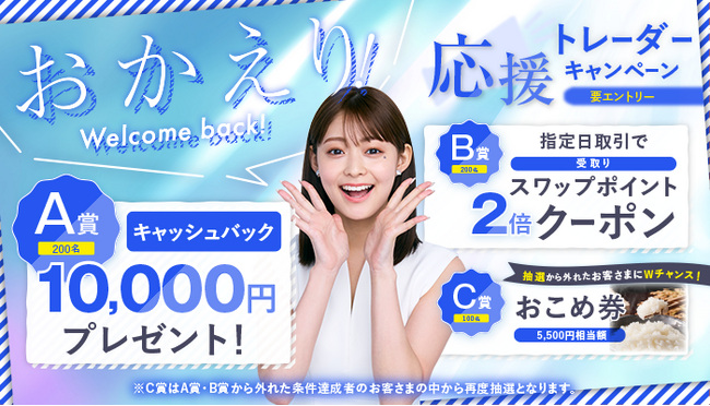 取引再開は今がチャンス!「第3弾!ウェルカムバック!おかえりトレーダー応援キャンペーン」のお知らせ