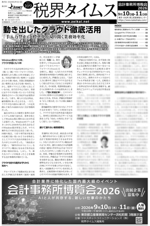 『税界タイムス』は税理士業界の動向をはじめ、顧客獲得のための手法、事務所経営に関するノウハウ、業務に関連するITニュースなど、厳選した情報を掲載した税理士・公認会計士のための専門的な新聞です。