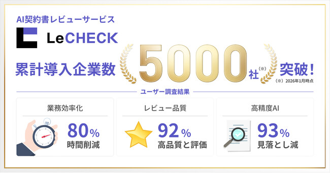 AI契約書レビューサービス「LeCHECK」、累計導入企業数が5,000社を突破