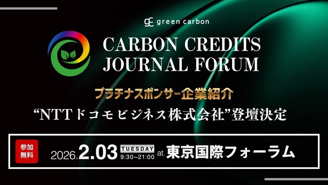 ネイチャーベースのカーボンクレジット創出・販売事業を展開するGreen Carbon株式会社(代表取締役:大北潤、以下Green Carbon(グリーンカーボン))は、国内最大級のカーボンクレジット特化フォーラム「Carbon Credits Journal Forum(以下、本Forum)」を、2026年2月3日(火)に東京国際フォーラムB7ホール(有楽町駅直結)にて開催します。国内外の脱炭素主要プレイヤー500名以上が一堂に会し、カーボンクレジットの未来を本気で語り合う場を提供します。