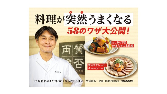 このたび、株式会社マガジンハウス(本社:東京都中央区、代表取締役社長:鉄尾周一)は、東京・恵比寿の予約の取れない和食屋「賛否両論」店主・笠原将弘氏によるレシピ集『笠原将弘のまた食べたくなるおそうざい』が売れ行きを伸ばし、重版が決定したことをお知らせいたします。