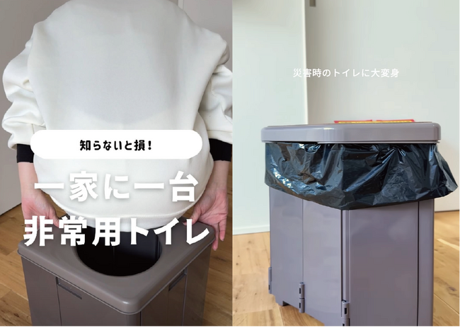 - 1台2役の設計:平常時はフタをして腰掛け用チェア、災害時は簡易トイレとして活用可能です。