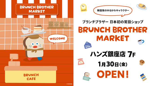 株式会社ハンズ(本社:東京都新宿区)は、韓国発のキャラクターブランド「BRUNCH BROTHER(ブランチブラザー)」の日本初のインショップをハンズ銀座店内に「ブランチブラザー マーケット」として2026年1月30日(金)にオープンしました。