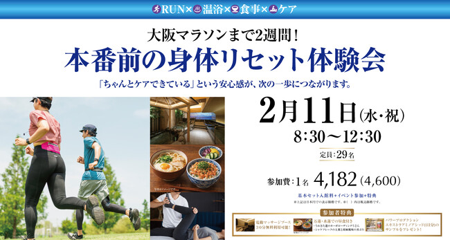 大阪マラソンまで2週間!【RUN×温浴×食事×ケア】本番前の身体リセット体験会
