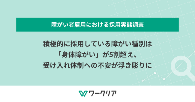 積極的に採用している障がい種別は「身体障がい」が5割超え、受け入れ体制への不安が浮き彫りに