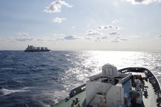 「ENERGY ADVANCE」より見た「あきつしま」(海上保安庁提供)