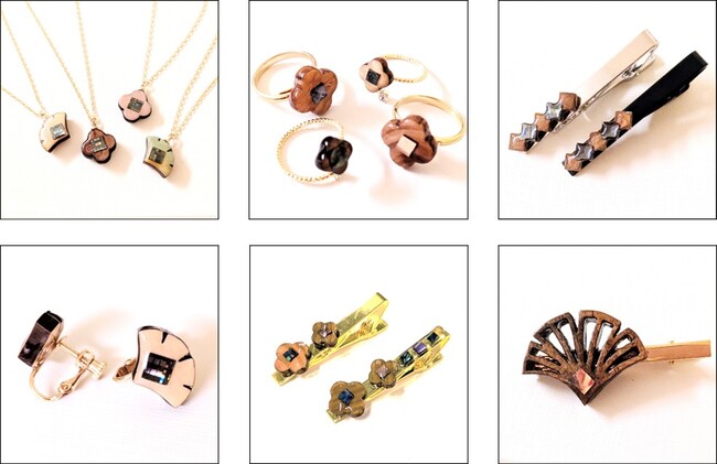 本商品は、2023年に熊本大学大学院先端科学研究部と東京大学大学院工学系研究科との間で連携協定を締結したことを契機に、熊本大学教育学部美術科 松永拓己教授と東京大学の職員による共同企画として誕生しました。制作は熊本大学教育学部美術科の学生たちが担っており、熊本大学の廃木材と、役目を終えた半導体素材を再利用したアップサイクル・アクセサリーです。