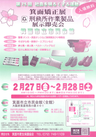- 箕面矯正展「刑務所作業製品展示即売会」を開催します!02/25 11:00