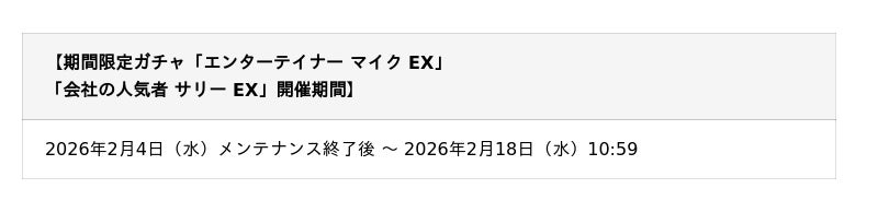 ■期間限定ガチャに新キャラクター「エンターテイナー マイク EX」、「会社の人気者 サリー EX」が登場!