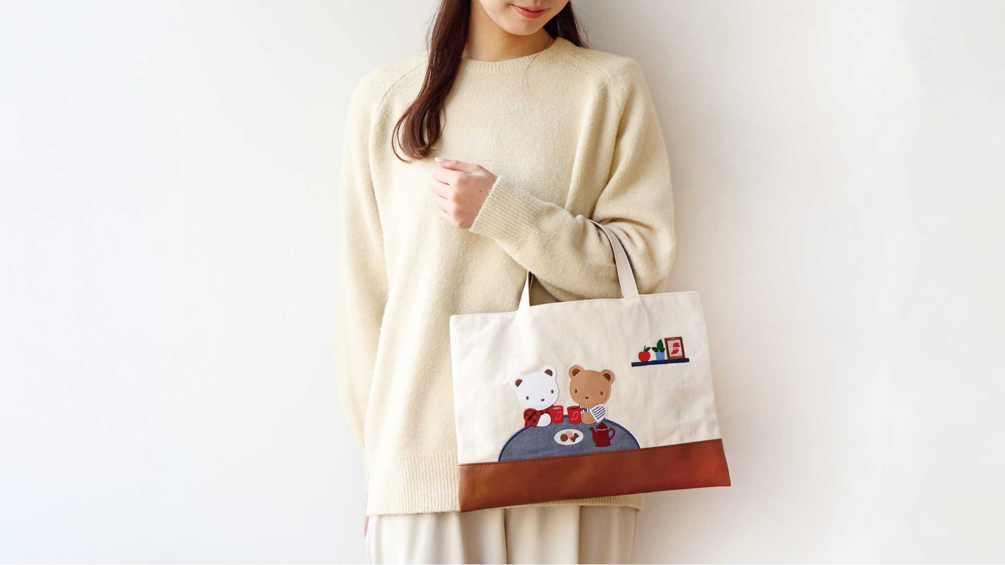 柔らかな印象で、丈夫かつ、使い込むことにより経年変化も楽しんでいただける素材で、アートは、おうちでラテを楽しむクマちゃんたちを表現しました。細部には「ネスカフェ」のロゴや、カップに「ネスカフェ」のアクサン(※フランス語で「アクセント」の意味)マークをあしらい、コラボレーションならではのデザインに仕上げました。