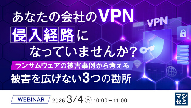 マジセミ株式会社は「あなたの会社のVPN、侵入経路になっていませんか?」というテーマのウェビナーを開催します。