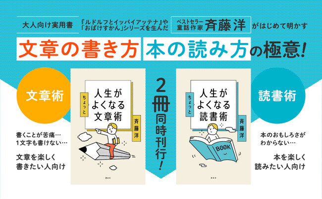 40年にわたり児童文学の第一線で活躍し続ける作家・斉藤洋による、書くことや読むことを楽しむための実用書が発売されました。多くの名作を生み出した作家が語る「文章の書き方」「本の読み方」の極意とは。『人生がちょっとよくなる文章術』『人生がちょっとよくなる読書術』(著:斉藤洋)、2冊同時発売です。