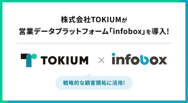 株式会社インフォボックス(本社:東京都千代田区、代表取締役CEO:平沼 海統)は、経理AIエージェントTOKIUMを提供する株式会社TOKIUM(本社:東京都中央区、代表取締役:黒崎 賢一)が、営業データプラットフォーム「infobox」を導入したことをお知らせします。