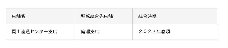 [表2: https://prtimes.jp/data/corp/166651/table/46_2_861a553766cd8365a966c64cf681779e.jpg?v=202602051215 ]※支店名や口座番号の変更はございませんので、通帳・キャッシュカードなどはそのまま継続してご利用いただけます。