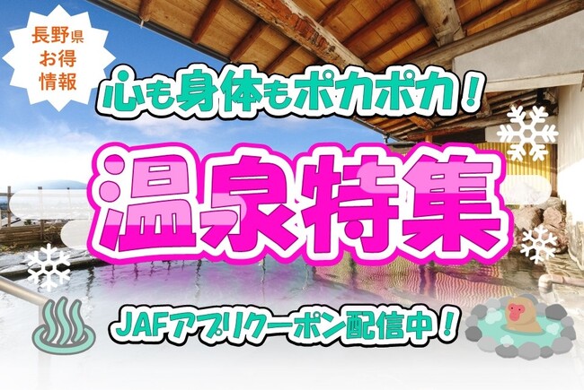 JAF(一般社団法人 日本自動車連盟)長野支部(支部長 宇都宮進一)は、長野県内の温浴施設で使用できるJAF会員向けスマートフォンアプリクーポン企画を実施します。これに伴い、特設ページを1月26日(月)から公開しました。