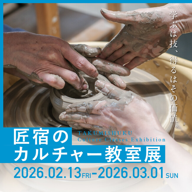 静岡市の日本最大級の伝統工芸体験施設『駿府の工房 匠宿』(株式会社創造舎、代表取締役:山梨洋靖)にて、2026年2月13日(金)から3月1日(日)まで「匠宿のカルチャー教室 展」を開催いたします。