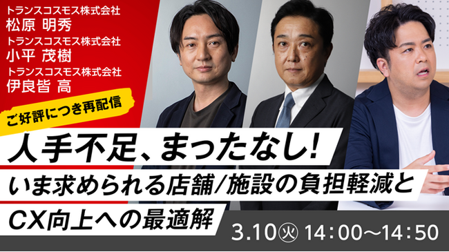 【トランスコスモスオンラインセミナー】【ご好評につき再配信】人手不足、まったなし!~いま求められる店舗/施設の負担軽減とCX向上への最適解~を3月10日(火)に開催