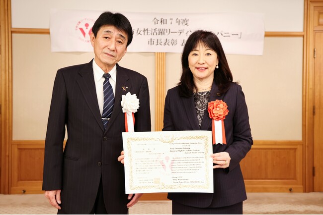 表彰式では、西山副市長が市を代表して「意欲のある女性が活躍し続けられる組織づくり、仕事と生活の両立(ワーク・ライフ・バランス)支援、男性の育児や家事・地域活動への参画支援を積極的に推進され、その功績はきわめて顕著であります」などと受賞をたたえました。