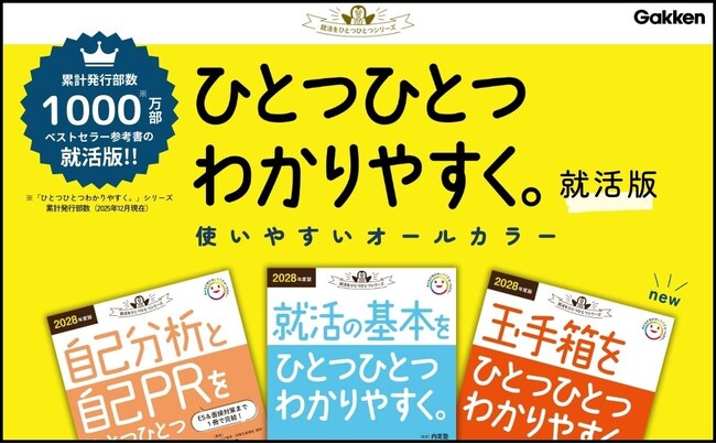 株式会社 学研ホールディングス(東京・品川/代表取締役社長:宮原博昭)のグループ会社、株式会社Gakken(東京・品川/代表取締役社長:南條達也)は、2026年2月5日に『2028年度版 就活の基本をひとつひとつわかりやすく。』『2028年度版 自己分析と自己PRをひとつひとつわかりやすく。』『2028年度版 玉手箱をひとつひとつわかりやすく。』を発売いたしました。