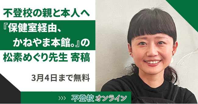 ■一緒に悩んでくれる親がいるだけで、子どもの希望。『保健室経由、かねやま本館。』の著者・松素めぐり先生からの、不登校の親と子どもへのメッセージ~(有料会員様限定)https://futoko-online.jp/contribution/18651/